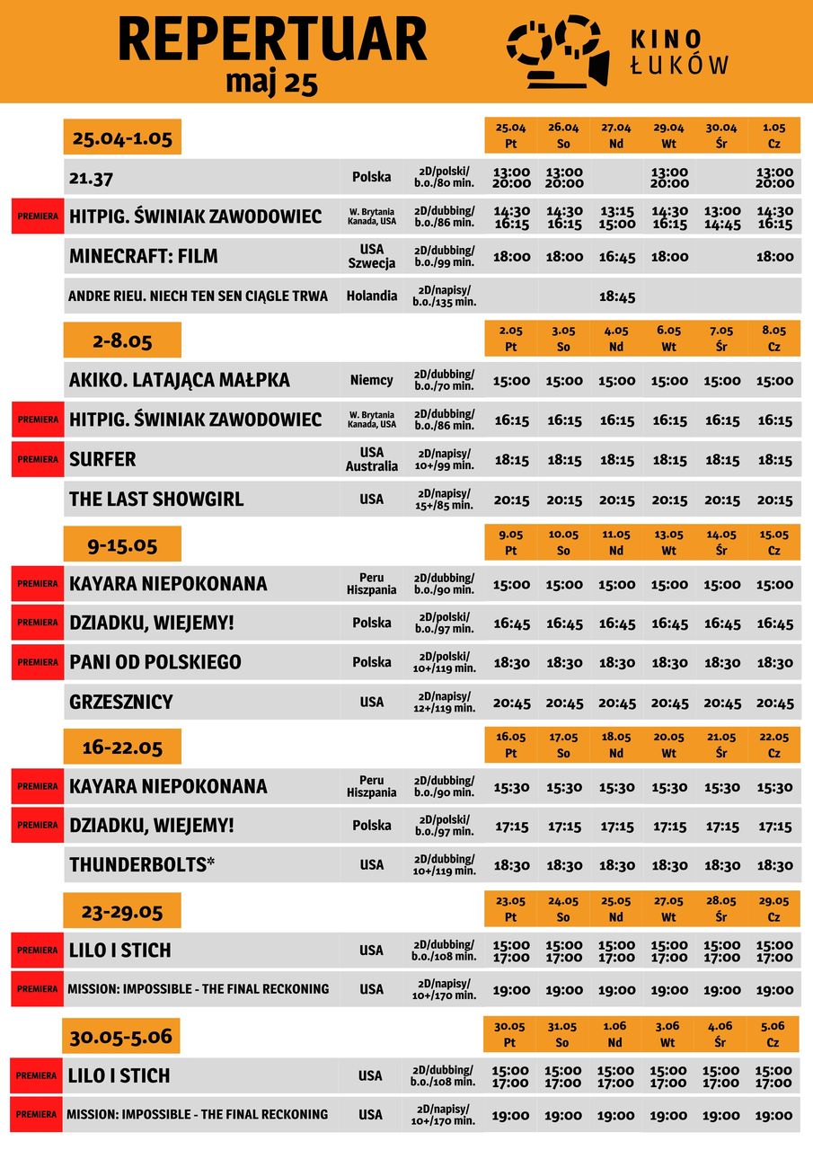 „Mission: Impossible - The Final Reckoning”, „Dziadku, wiejemy!”, „Surfer” oraz dokument „21.37” – to filmy, które znalazły się w majowym repertuarze Kina Łuków.