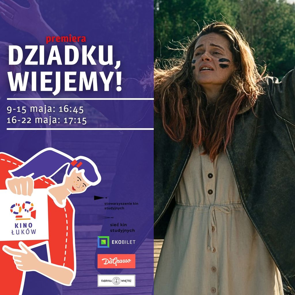 „Dziadku, wiejemy!” jest to film familijny produkcji polskiej z 2025 roku. Pewnego dnia dziadek Jeremi wywołuje w domu spokojnej starości taki zamęt, że grozi mu przeniesienie do szpitala psychiatrycznego. Marta, jego córka, zgadza się zabrać go do siebie, choć to dla niej trudne, bo Jeremi jest nieprzewidywalny i ma bujną wyobraźnię. Sytuację komplikuje Jagoda, córka Marty, która uwielbia dziadka i podziela jego szalone pomysły. Gdy Jeremi odmawia zamieszkania z rodziną, Jagoda postanawia wziąć sprawy w swoje ręce. Dziewczynka i dziadek wyruszają w pełną przygód podróż do legendarnego statku Światło Morza. W pogoń za nimi rusza szajka złoczyńców dowodzona przez bogacza Waldemara oraz przerażona mama Jagody. No i smok – rusza za nimi także smok... „Dziadku, wiejemy!” to pełen humoru i ciepła film familijny o najważniejszych wartościach w życiu, przygodach i magii wyobraźni.„Dziadku, wiejemy!” w dniach od 16 do 22 maja o godz. 17:15. Czas: 1 godz. 37 minut.