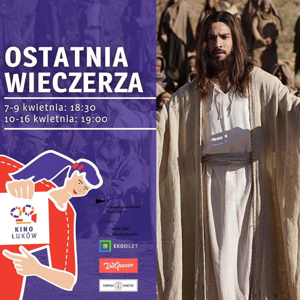 „Ostatnia Wieczerza” to dramat biblijny produkcji amerykańskiej z 2025 roku. Jezus zbiera swoich uczniów na Ostatnią Wieczerzę. Widzi jak tajemnice i skrywane motywy drążą jego uczniów. Wspomina dobre dni oczekując na koniec swojej ziemskiej drogi. Nocą tą zaufanie zostaje wystawione na próbę, a lojalność podana w wątpliwość. Ale żadne cierpienie ani zdrada nie sprawią, że zejdzie ze swojej ścieżki i zrezygnuje z odkupienia świata. W napiętej atmosferze ostatnich dni w Jerozolimie narastają strach, niepewność i polityczne intrygi. Apostołowie przeczuwają nadchodzącą katastrofę, a Jezus przygotowuje się na to, co nieuniknione. To biblijny dramat opowiedziany w sposób ludzki, współczesny i poruszający — bez patosu, za to z naciskiem na psychologię postaci i moralne dylematy Judasza.„Ostatnia Wieczerza” w dniach od 10 do 16 kwietnia o godz. 19:00. Czas: 1 godz. 54 minuty.