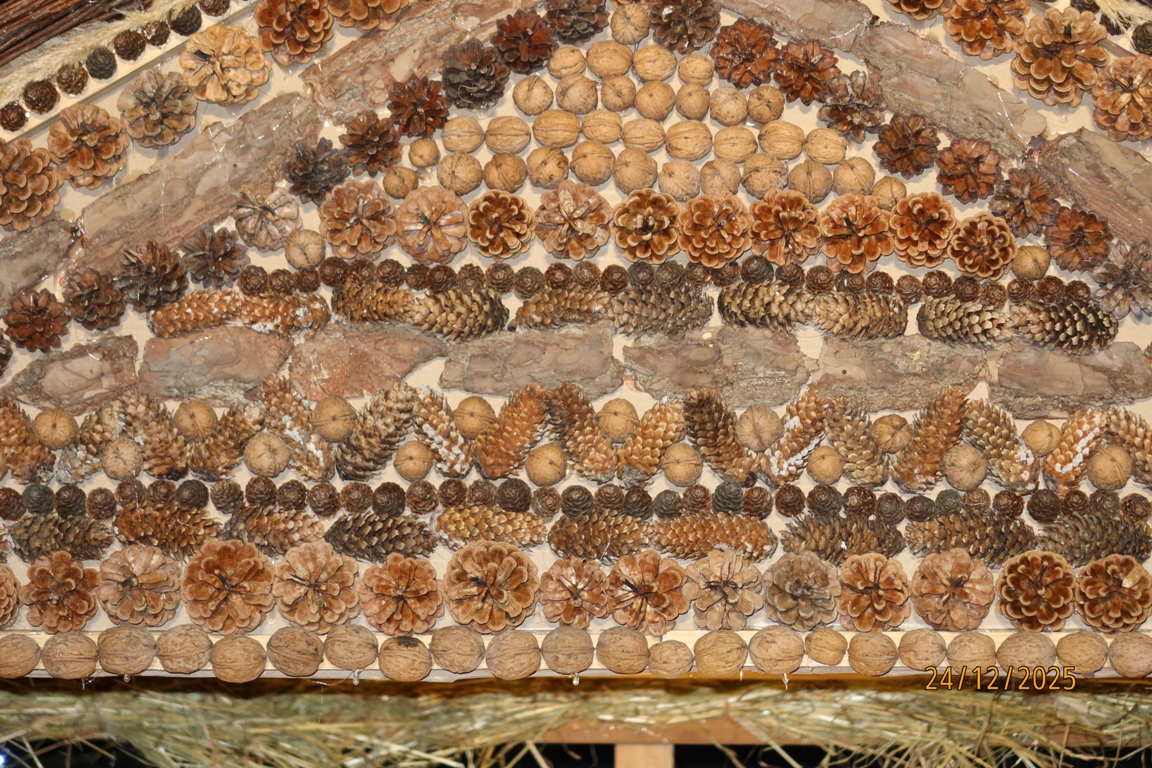 W kościele Najświętszego Serca Pana Jezusa w Wojcieszkowie można podziwiać wyjątkową dekorację wykonaną z szyszek i kory, przypominającą, że Boże Narodzenie to czas bliskości i wspólnoty. Wykorzystanie darów polskiej ziemi symbolizuje, że Chrystus pragnie rodzić się w tym, co nasze – w codziennym i zwyczajnym.