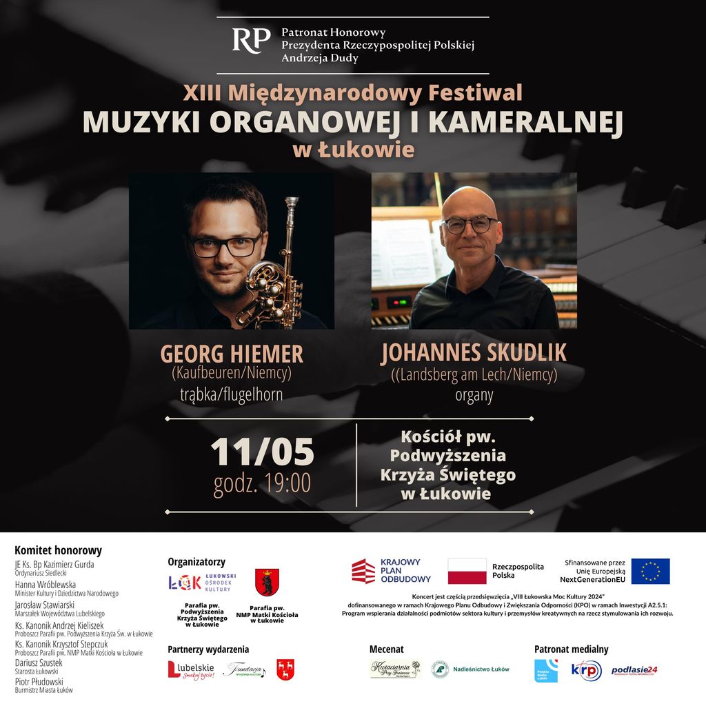 Przed nami kolejny koncert Międzynarodowego Festiwalu Muzyki Organowej i Kameralnej w Łukowie. Tym razem w kościele Podwyższenia Krzyża Świętego wystąpią dwaj muzycy z Niemiec: Georg Hiemer i Johannes Skudlik. Festiwalowi patronuje Katolickie Radio Podlasie i portal Podlasie24.