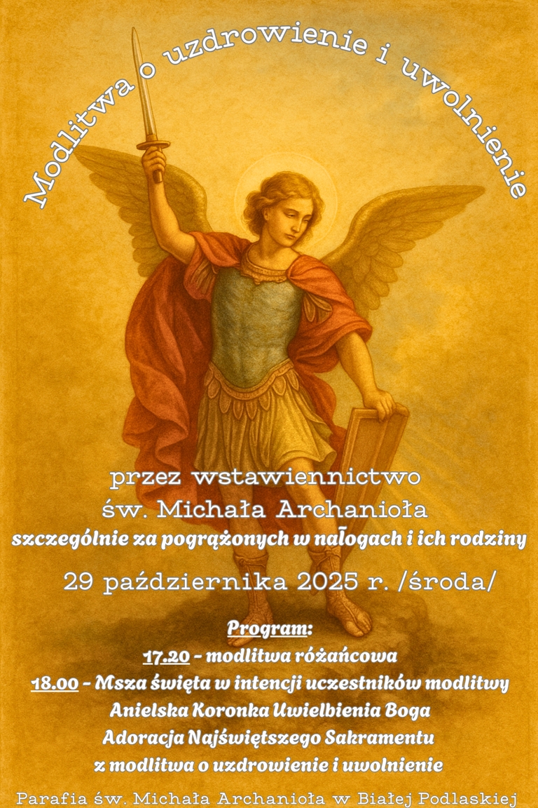 W parafii pw. św. Michała Archanioła w Białej Podlaskiej odbędą się modlitwy o uzdrowienie i uwolnienie za przyczyną patrona parafii i miasta. Spotkanie zaplanowano na środę, 29 października.