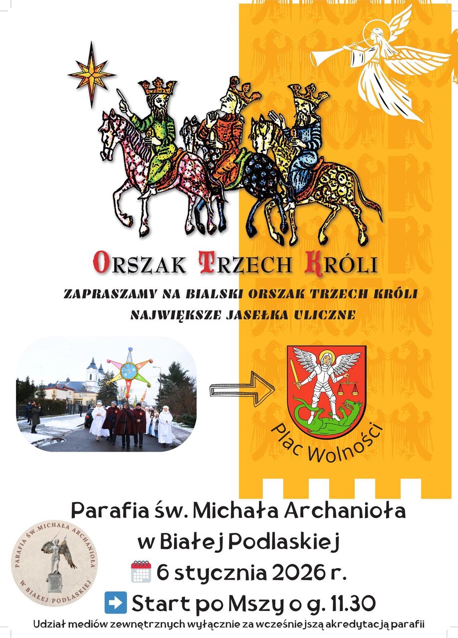 Orszak Trzech Króli to wydarzenie o charakterze religijnym, kulturalnym i integracyjnym, które od lat gromadzi całe rodziny, dzieci, młodzież oraz dorosłych. Organizatorzy zapraszają wszystkich mieszkańców oraz gości do wspólnego świętowania.