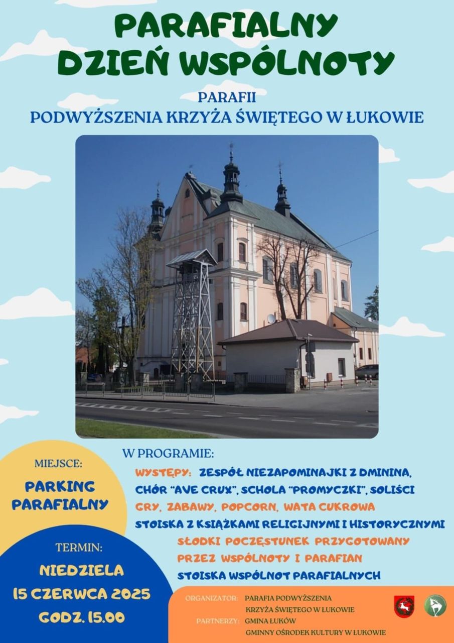 Po raz kolejny parafia Podwyższenia Krzyża Świętego w Łukowie organizuje Parafialny Dzień Wspólnoty. Odbędzie się on w niedzielę 15 czerwca. Spotkanie to będzie odbywać się w formie rodzinnego festynu.