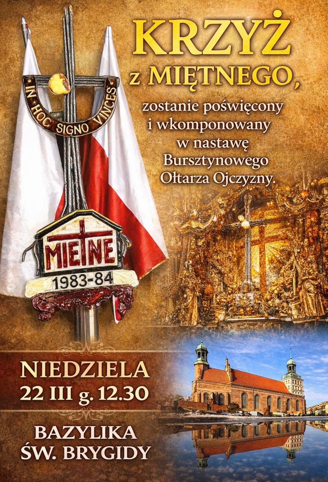 Replika wyjątkowego krzyża stanie się częścią nastawy ołtarzowej wykonanej z bursztynu w bazylice Św. Brygidy w Gdańsku. W ołtarzu tym umieszczono liczne krzyże upamiętniające ważne wydarzenia z historii Kościoła w Polsce. Jak podkreślają organizatorzy, obrona krzyża w Miętnem sprzed ponad czterdziestu lat jest wydarzeniem szczególnym, które zasługuje na trwałe upamiętnienie.Uroczysta Msza Święta z obrzędem poświęcenia repliki krzyża zostanie odprawiona o godzinie 12.30.