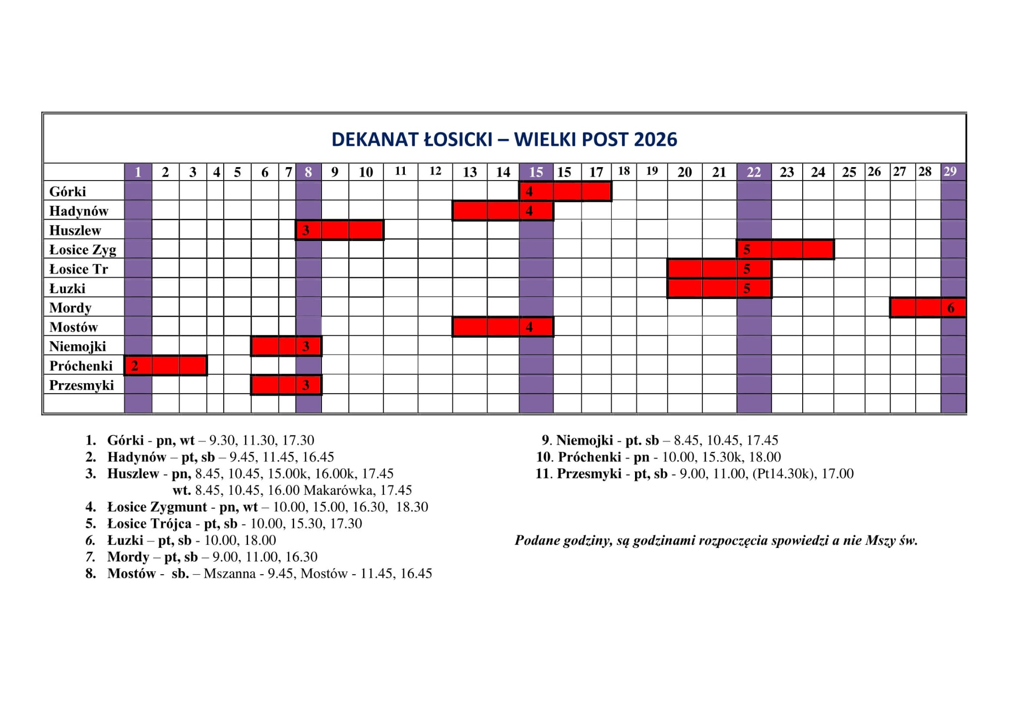 Rozpoczął się Wielki Post. Jak co roku, w okresie przygotowań do Świąt Wielkanocnych, w poszczególnych parafiach odbywają się rekolekcje wielkopostne. W dekanacie łosickim zaplanowano je w następujących terminach (zestawienie poniżej):
