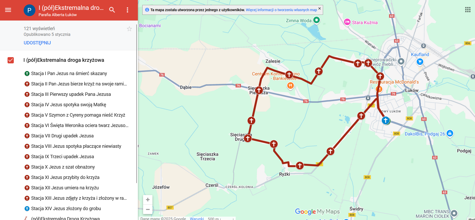 „Naprawdę warto doświadczyć jest takiej Drogi Krzyżowej. Przemarsz nocą, zmęczenie, modlitwa, skupienie, wysiłek i konkretna intencja. To wszystko rzeczywiście zbliża nas do Pana Jezusa kroczącego na Kalwarię. Niebywałe przeżycie duchowe, które idealnie wpisuje się w klimat Wielkiego Postu” – czytamy na stronie parafii Świętego Brata Alberta w Łukowie, gdzie rozpoczyna się właśnie przyjmowanie zapisów od osób, które będą chciały w ciszy i modlitwie przejść Drogę Krzyżową.Półekstremalna Droga Krzyżowa odbędzie się 28 marca. Rozpocznie się po Mszy Świętej o godzinie 17.20. Jej uczestnicy przejdą trasę prowadzącą od kościoła Świętego Brata Alberta przez Ryżki, Sięciaszkę, Zalesie i ulicą Poważe wrócą do świątyni (https://goo.gl/maps/eSdrLsj8v8c3rXru6). Będzie ona liczył dokładnie 16,9 km, a jej przejście zajmie około cztery godziny. Każdy uczestnik pokonuje trasę indywidualnie i swoim rytmem. Będą przygotowane stacje drogi krzyżowej i rozważania, dostępne w wersji papierowej i na telefon uruchamiane kodem QR. Na trasę każdy uczestnik zabiera krzyż.