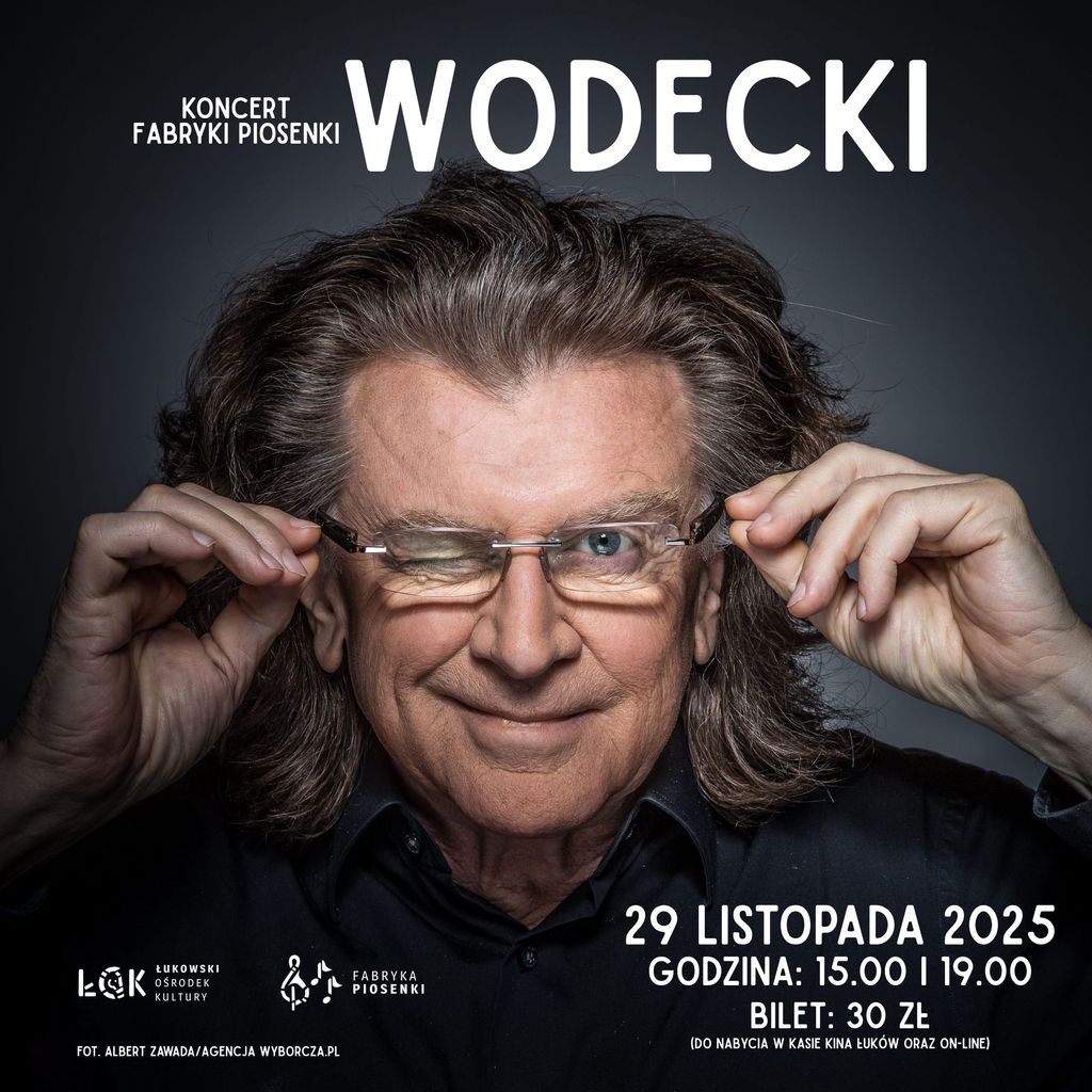 Koncert „Wodecki” w wykonaniu Fabryki Piosenki ŁOK odbędzie się w sobotę 29 listopada o godzinie 15:00 oraz 19:00, w sali widowiskowej ośrodka.