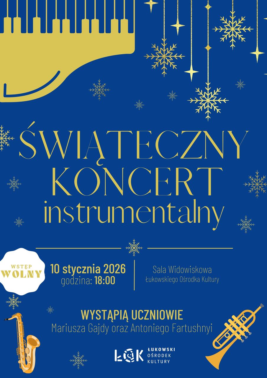 Świąteczny Koncert Instrumentalny będzie okazją, aby usłyszeć jak z grą na różnych instrumentach radzą sobie podopieczni Mariusza Gajdy i Antona Fartushnego, uczęszczający na zajęcia do Łukowskiego Ośrodka Kultury. Koncert odbędzie się w sobotę, 10 stycznia w sali widowiskowej ŁOK. Rozpocznie się o godzinie 18:00. Wstęp wolny.