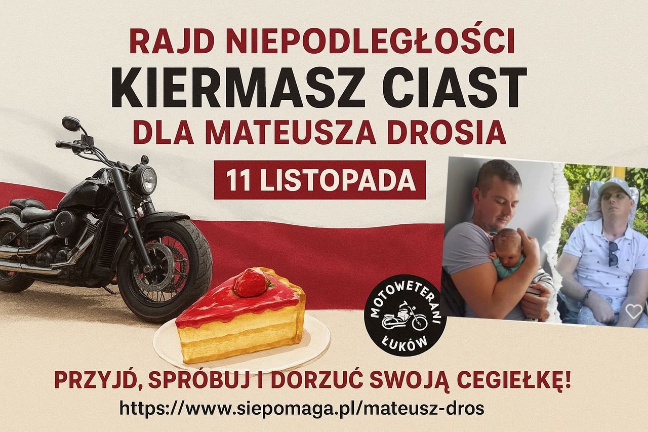 W świętowanie 11 Listopada włączają się również Motoweterani Łuków. Oni organizują II Rajd Niepodległości oraz akację wsparcia dla Mateusza Drosia. Motocykliści wyrusza na rajd o godzinie 10:30 z zalewu Zimna Woda, a o około godziny 11:00 będą już na Placu Solidarności i Wolności.