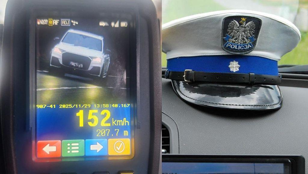 Utrata prawa jazdy, 5000 zł mandatu oraz 15 punktów karnych – takie były konsekwencje brawurowej jazdy kierowcy audi, który w terenie zabudowanym pędził aż 152 km/h.
