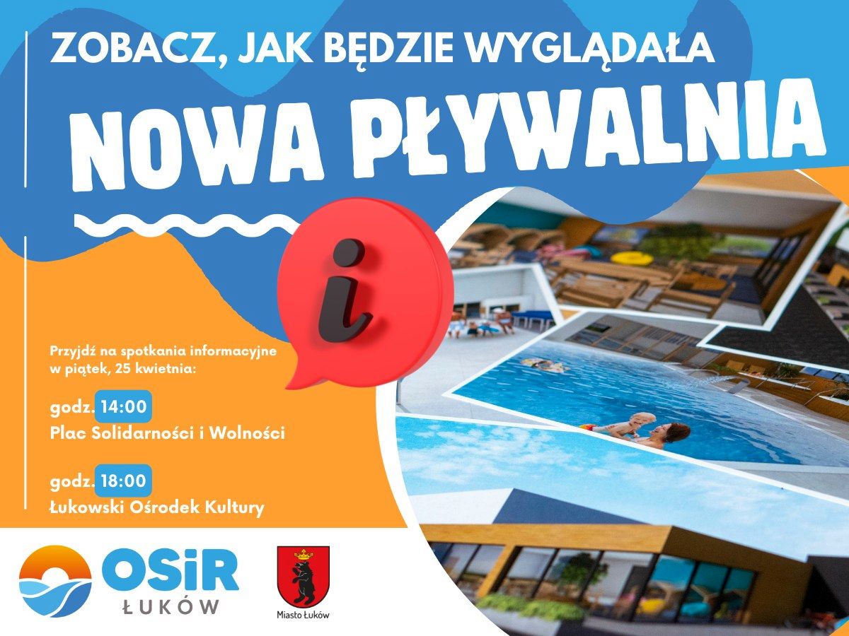 W najbliższy piątek, 25 kwietnia, każdy, kto będzie chciał, będzie mógł osobiście zobaczyć, jak ma wyglądać przyszły kompleks basenów w Łukowie. Będzie to możliwe podczas konsultacji społecznych, które odbędą się na Placu Solidarności i Wolności oraz w Łukowskim Ośrodku Kultury.
