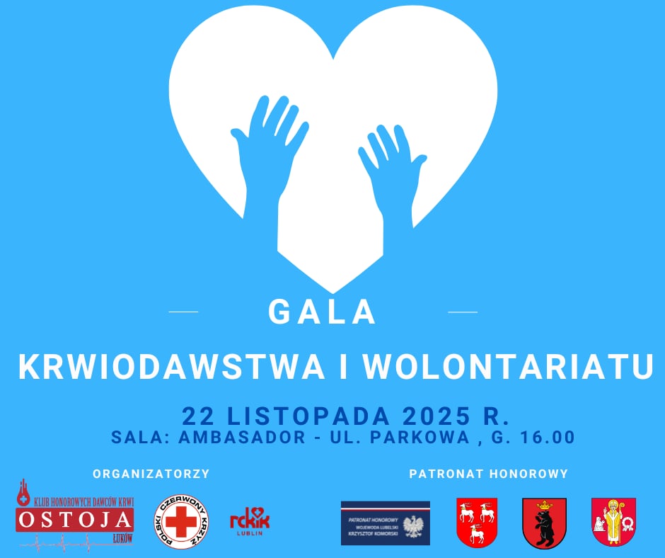 Gala Krwiodawstwa i Wolontariatu będzie okazją do spotkania krwiodawców z terenu powiatu łukowskiego, osób zaangażowanych społecznie, organizatorów akcji społecznych i wolontariuszy oraz przyjaciół i sympatyków łukowskiego klubu Honorowych Dawców Krwi „Ostoja”. Podczas gali krwiodawcom i osobom zaangażowanym społecznie wręczone zostaną odznaczenia. Zaplanowano również wystąpienia ekspertów oraz część artystyczną.Osoby, które chcą uczestniczyć w gali proszone są o potwierdzenie swojej obecności w wiadomości na messengerze Klubu HDK „Ostoja” lub pisząc wiadomość tekstową na numer telefonu 508 477 469.