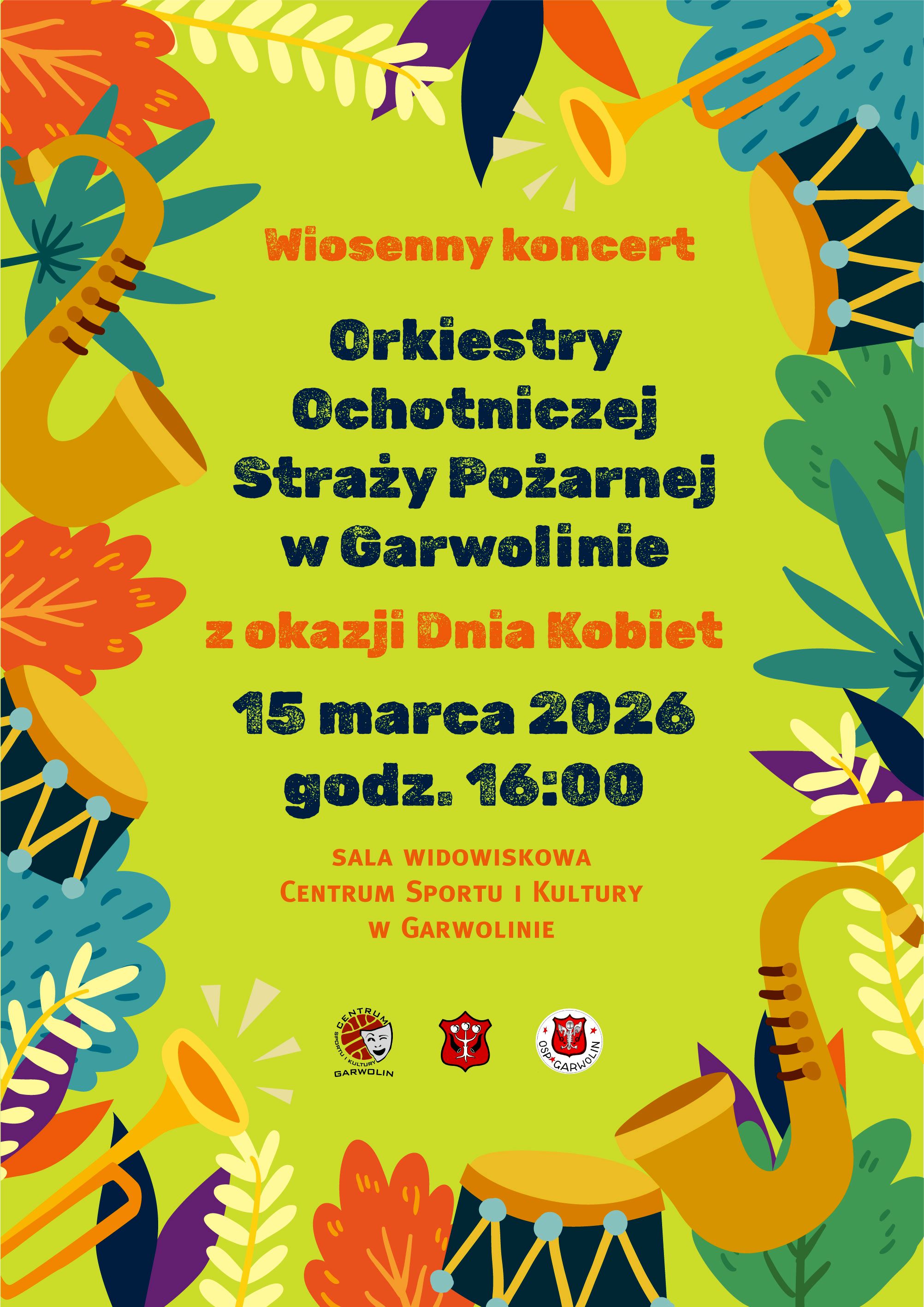 Koncert Orkiestry Ochotniczej Straży Pożarnej z Garwolina z okazji Dnia Kobiet to długoletnia tradycja. Są wszakże rzeczy, które nigdy się nie nudzą. I tak właśnie jest z tym wydarzeniem. Dobrze spędzone popołudnie wśród muzyków, których się zna i docenia, wśród przebojów, które się pamięta i chętnie nuci to doskonały pomysł na uczczenie pięknego święta wszystkich pań.W niedzielne popołudnie 15 marca o godzinie 16:00 w sali kinowej Centrum Sportu i Kultury pod przewodnictwem Zbigniewa Miętusa z udziałem kilkudziesięciu muzyków odbędzie się „kobiecy” koncert w wydaniu wiosennym. Wstęp wolny.
