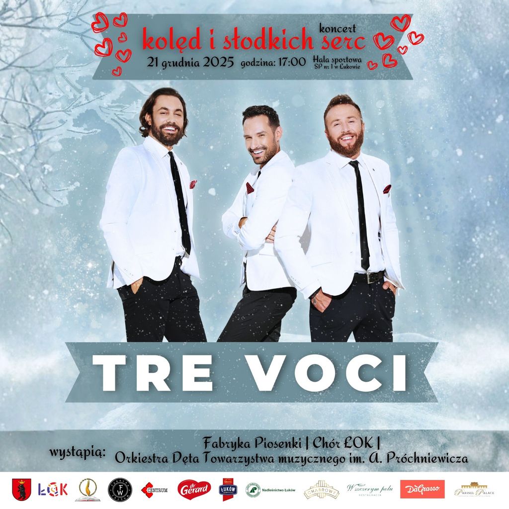 Koncert Kolęd i Słodkich Serc jak co roku odbędzie się w hali sportowej w Szkole Podstawowej nr 1. Rozpocznie się o godzinie 17:00. Na scenie pojawią się orkiestra dęta pod batutą Tadeusza Bochmana, Chór ŁOK z Sylwestrem Juszczyńskim na czele oraz podopieczni Moniki Sołtyszewskiej - Leśkiewicz z Fabryki Piosenki: Oliwia Gręzak, Agata Kowal, Natalia Burdach, Nina Maros, Mikołaj Gajowy i Ignacy Nurzyński. Gwiazdą tegorocznego koncertu będzie trio tenorów Tre Voci.Podczas koncertu wręczone też zostaną Odznaki Honorowe za Zasługi dla Łukowa oraz Złote Niedźwiedzie.