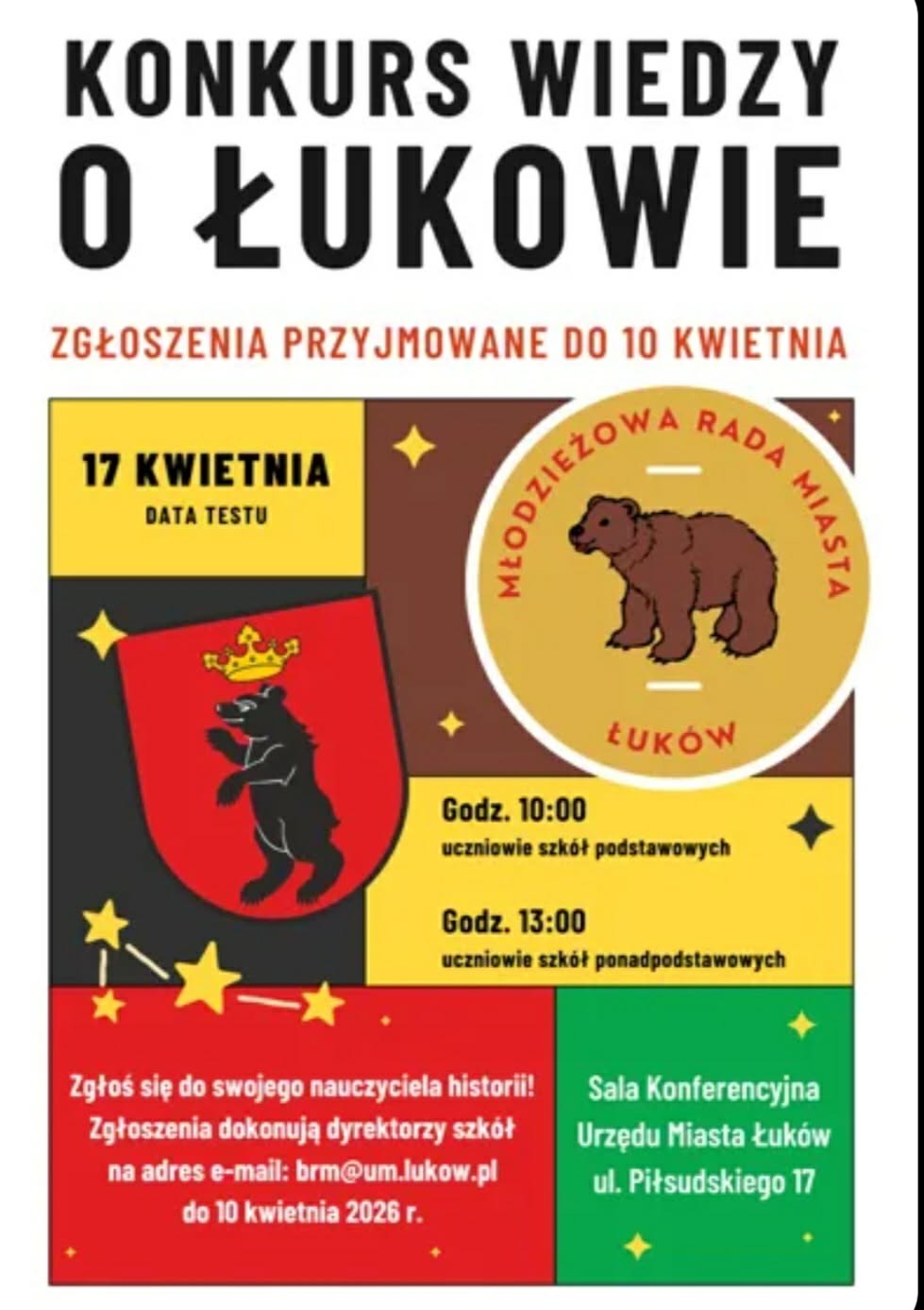 Łukowska Młodzieżowa Rada Miasta czeka na chętnych do udziału w Konkursie Wiedzy o Łukowie. Zaplanowano go na 17 kwietnia. To konkurs skierowany do uczniów szkół podstawowych oraz średnich.