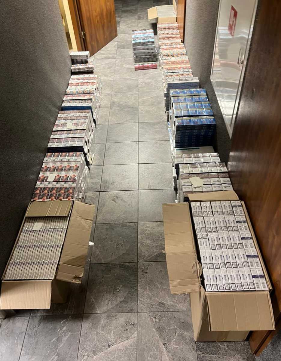 Podczas przeszukania auta funkcjonariusze zabezpieczyli prawie 7 tysięcy paczek papierosów bez polskich znaków skarbowych akcyzy. Kolejne ponad tysiąc paczek policja znalazła w domu 42-latka.