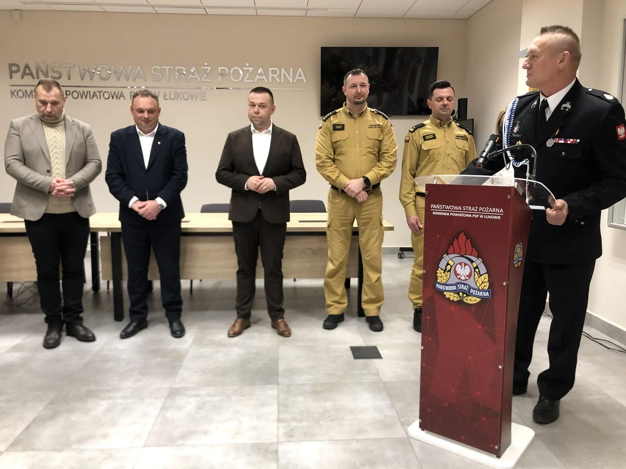 Nowy sprzęt otrzymały jednostki OSP z Trzebieszowa, Tuchowicza, Stanina, Sarnowa, Kopiny, Jeleńca i Gozdu. Są to m.in. ubrania bojowe i narzędzia ratownicze, motopompa, wąż tłoczony do pomp pożarniczych, specjalistyczne latarki, aparat powietrzny, zestaw kominiarski oraz sprzęt do ratownictwa wodnego. Wartość sprzętu, który trafił do sześciu jednostek OSP z gmin Stanin i Trzebieszów to 100 tysięcy złotych. Przekazanie nowego sprzętu odbyło się w poniedziałek, 22 grudnia w siedzibie Komendy Powiatowej Państwowej Straży Pożarnej w Łukowie.O nowym sprzęcie ratowniczo – gaśniczym przekazanym jednostkom OSP rozmawialiśmy ze Sławomirem Rzymowskim, wicestarostą, druhem Piotrem Lendzionem, komendantem gminnym i prezesem OSP Stanin oraz starszym kapitanem, Konradem Turskim, komendantem łukowskiej jednostki: