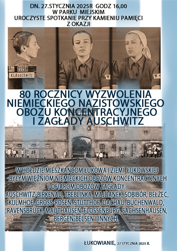W parku miejskim w Łukowie, przy „Mówiącym Kamieniu” upamiętniającym osoby z Ziemi Łukowskiej, które zginęły w obozach koncentracyjnych, w poniedziałek, 27 stycznia, odbędzie się milczące spotkanie. Będzie to okazja to uczczenia 80. rocznicy wyzwolenia obozu Auschwitz – Birkenau.