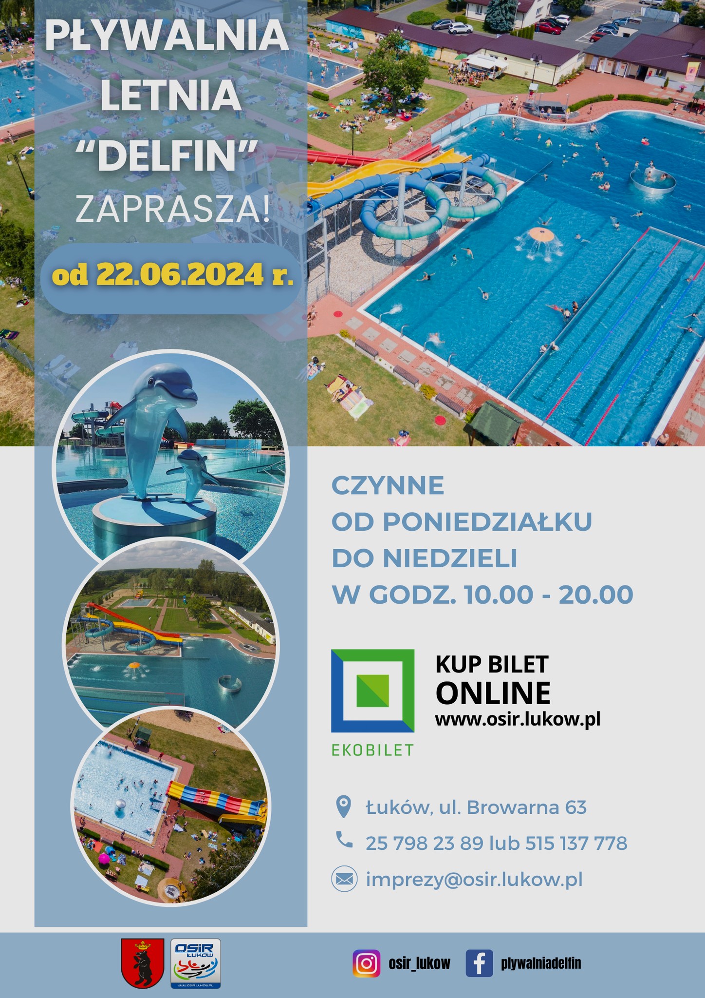 Letnia pływalnia „Delfin” będzie czynna przez siedem dni w tygodniu, od poniedziałku do niedzieli, w godzinach od 10.00 do 20.00. Nowy cennik biletów jest dostępny na stronie OSiR. Przypominamy, że posiadacze m.in. Łukowskiej Karty Mieszkańca czy też Karty Seniora, mogą liczyć na zniżki.