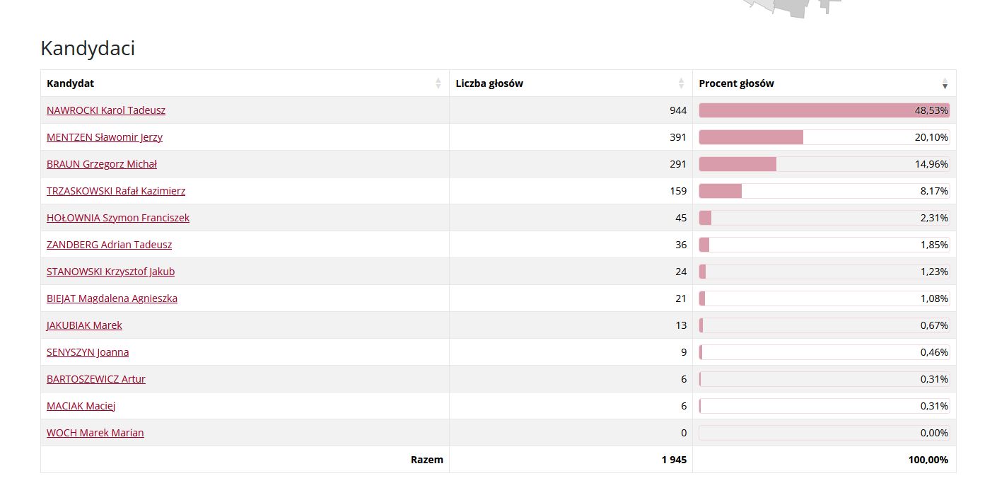 W powiecie łukowskim jako pierwsza podliczyła głosy w wyborach prezydenckich Gmina Serokomla. Wygrywa tu Karol Nawrocki zdobywając prawie połowę wszystkich głosów. Jego główny kontrkandydat jest dopiero na czwartym miejscu - Rafał Trzaskowski uzyskał nieco ponad 8 procent głosów. Gdyby o wynikach wyborów decydowali mieszkańcy Gminy Serokomla, to do drugiej tury wszedłby Sławomir Mentzen - nieco ponad 20 procent. Na trzecim miejscy jest Grzegorz Braun, który uzyskał prawie 15 procent głosów.
