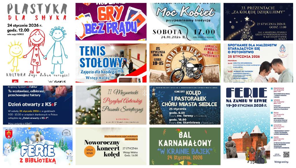 Przed nami weekend pełen wydarzeń w regionie. Zbliżające się dni zapowiadają się intensywnie – koncerty, spotkania i propozycje dla całych rodzin. Zebraliśmy plakaty najciekawszych inicjatyw, wśród których znalazło się także kilka propozycji na przyszły tydzień.