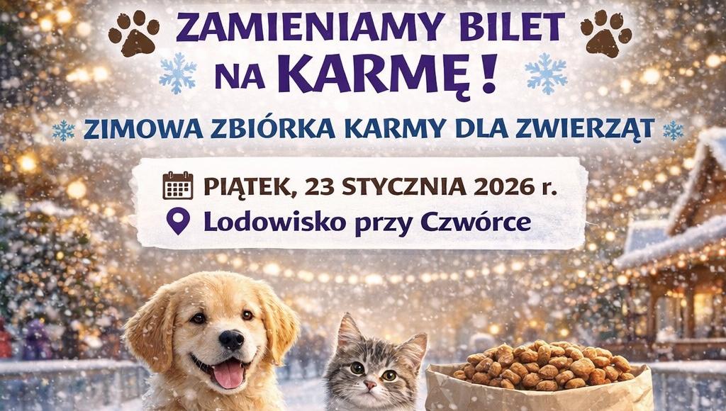 Na lodowisku przy łukowskiej "Czwórce" odbędzie się wyjątkowa akcja charytatywna pod hasłem „Zamieńmy bilet na karmę!”. Inicjatywa łączy zimową rozrywkę z realną pomocą dla potrzebujących zwierząt. Akcja, która już dziś, w piątek 23 stycznia, rusza o godzinie 16:00.