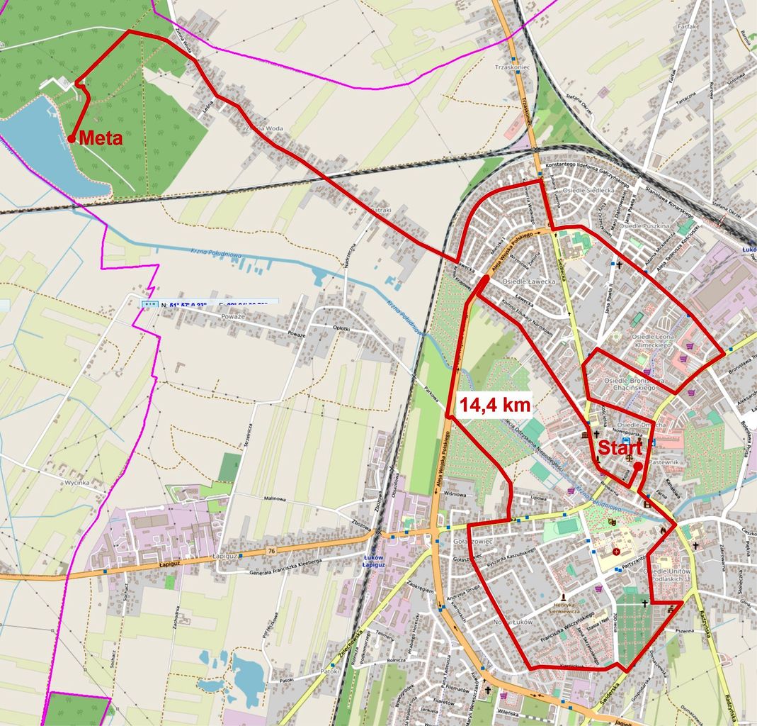 Mapa z trasą, którą przemierzać będą rowerzyści w sobotę 16 września: