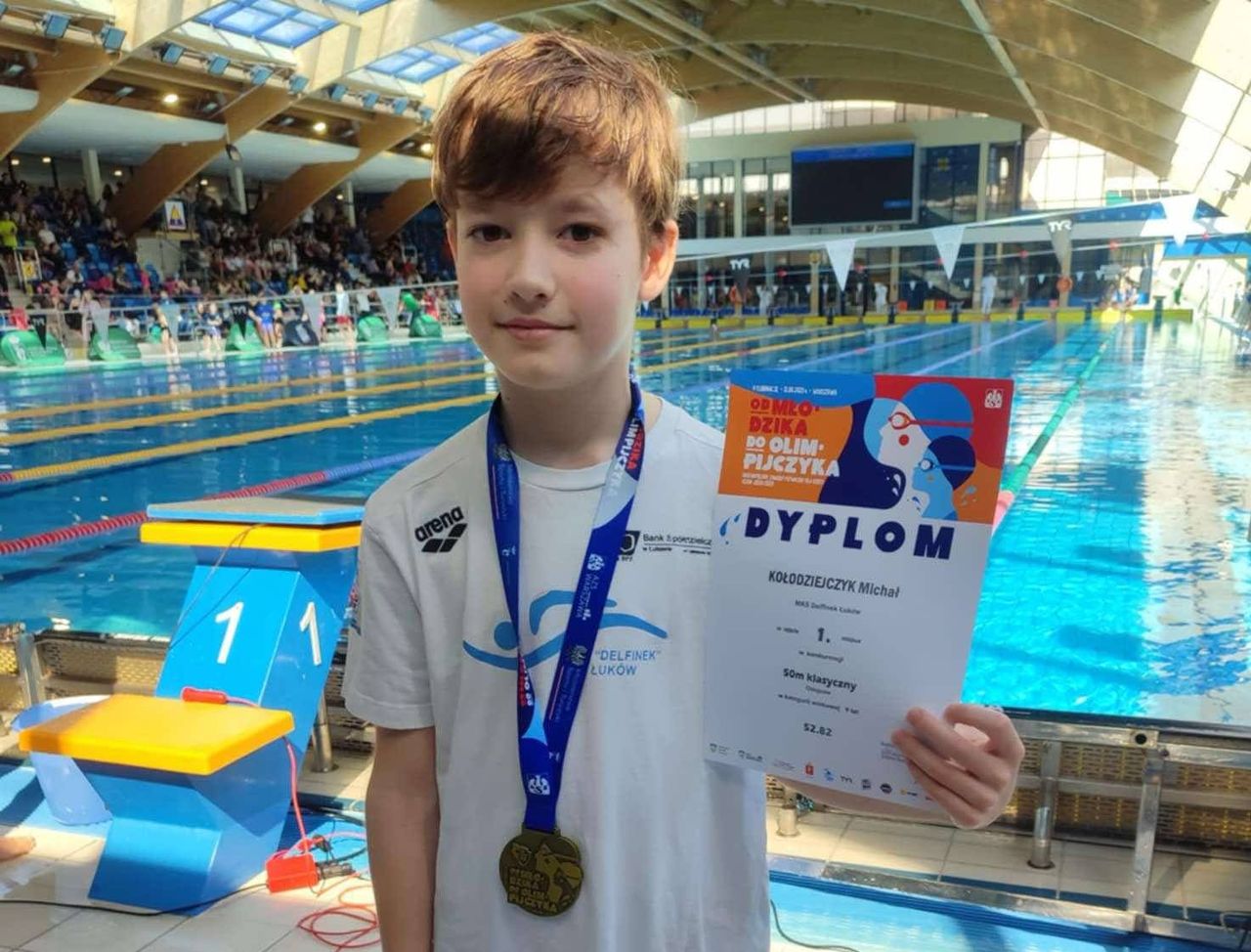 Michał Kołodziejczyk, młody pływak z MKS „Delfinek” Łuków, zdobył kolejny złoty medal. Tym razem nie miał sobie równych w swojej kategorii wiekowej podczas piątych eliminacji Ogólnopolskich Zawodów Pływackich „Od Młodzika do Olimpijczyka”.