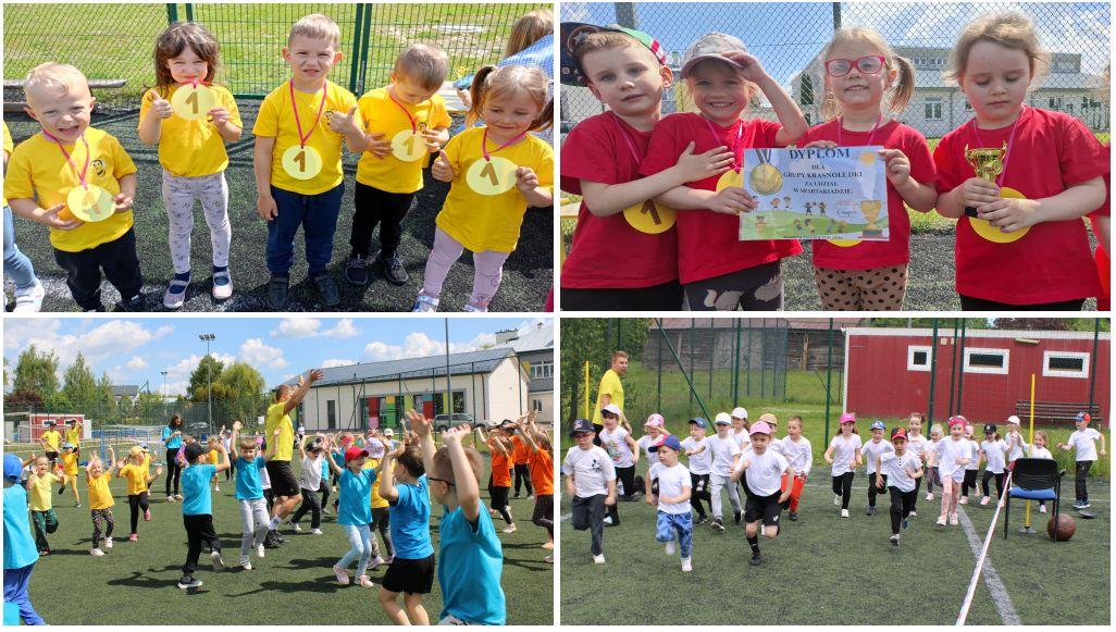 Na orliku dzieci mierzyły się z torem przeszkód oraz rzucały woreczkami do hula – hop, ćwicząc zręczność i celność. Kort zamienił się w arenę zmagań zespołowych – odbyło się tam przeciąganie liny i skoki w workach, które wzbudziły wiele radości i zdrowej rywalizacji.Spartakiada przebiegała w dwóch turach. Najpierw swoje siły sprawdziły dzieci z grup: Jagódki, Sówki, Pszczółki i Krasnoludki, a następnie do zabawy przystąpiły Słoneczka, Pingwinki, Misie oraz Tygryski.